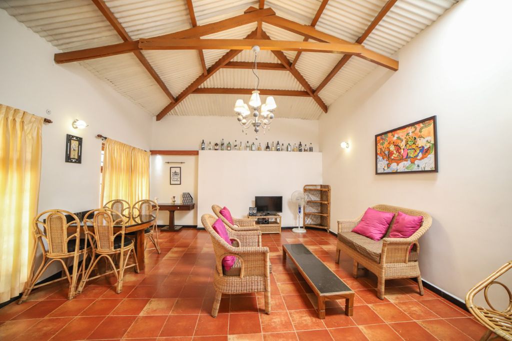 There are two bedrooms with well-appointed washrooms. The common area is a living room which can manage 6 guests comfortably and so is the dining room which can seat 6 guests.