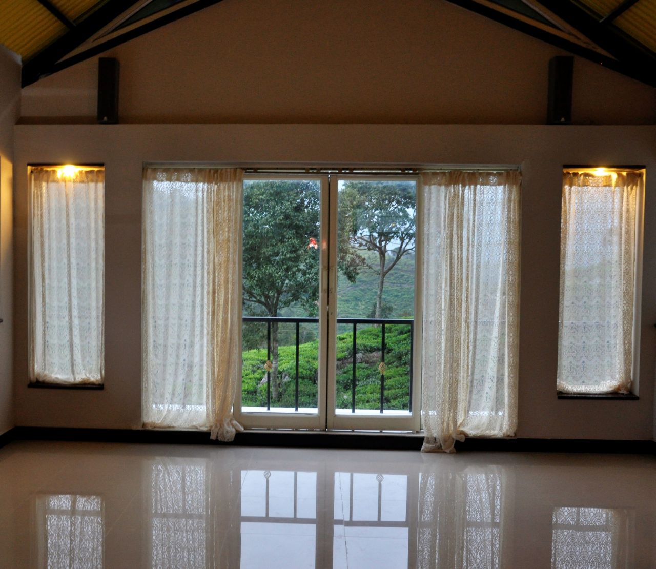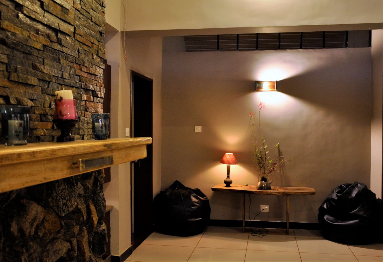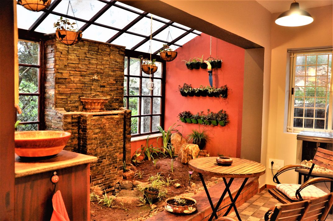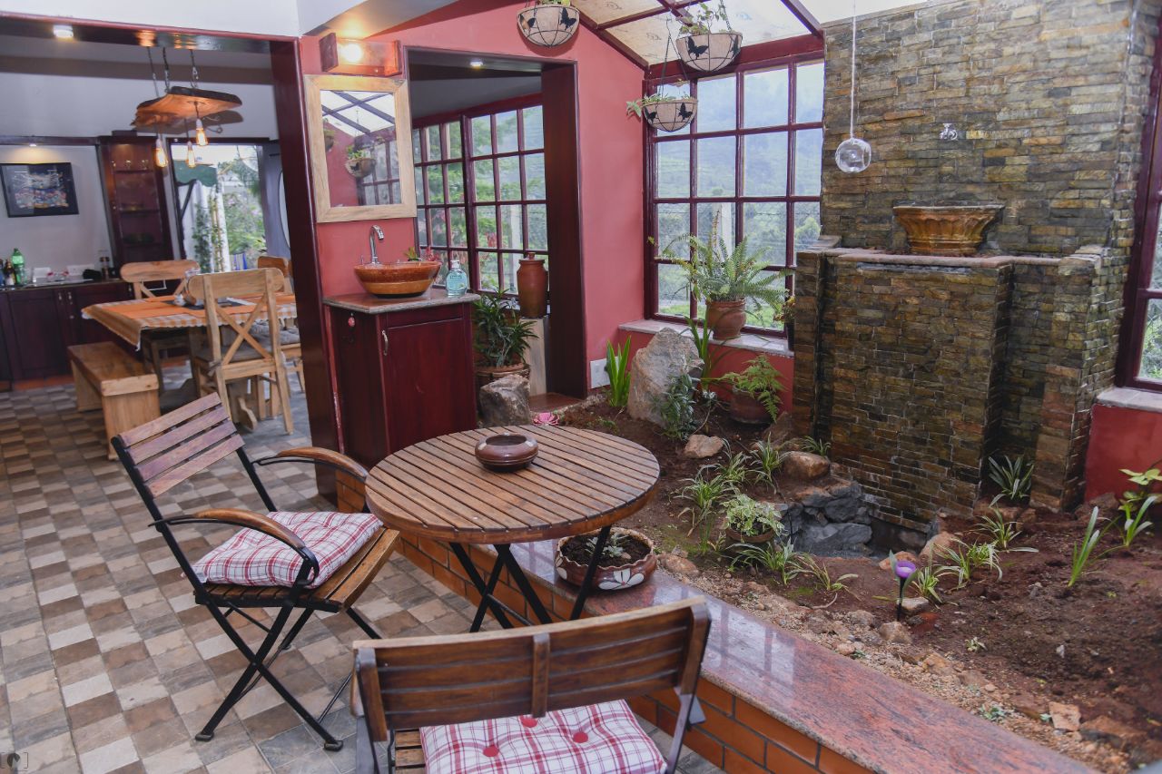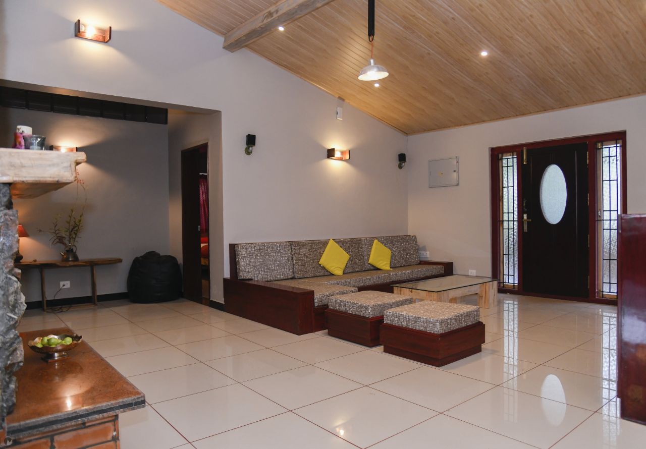 There are four bedrooms with well-appointed washrooms. The common area is a living room which can manage 10 guests comfortably and so is the dining room which can seat 6 guests. You also have a indoor tropical garden where you can dine in.